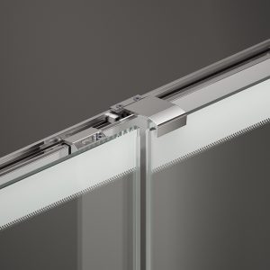 Il meccanismo di scorrimento è integrato nelle ruote a cuscinetto poste nella parte superiore del vetro mobile e regolabili in altezza, così da fronteggiare eventuali dislivelli del pavimento. Tutto è progettato per garantire la massima stabilità e facilità di installazione, grazie a un innovativo sistema di montaggio. Il profilo murale, dotato del sistema “Easy-Fix”, è facilmente regolabile ed essendo completamente liscio internamente, rende la pulizia più agevole.