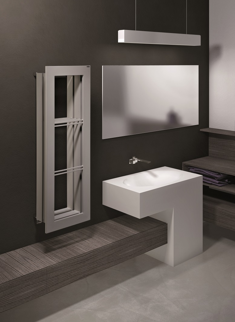 Design Luigi Brembilla, VISION è una collezione di caloriferi e scaldasalviette a cornice che ricorda l’affacciarsi a una finestra o dall’alto di una scala.