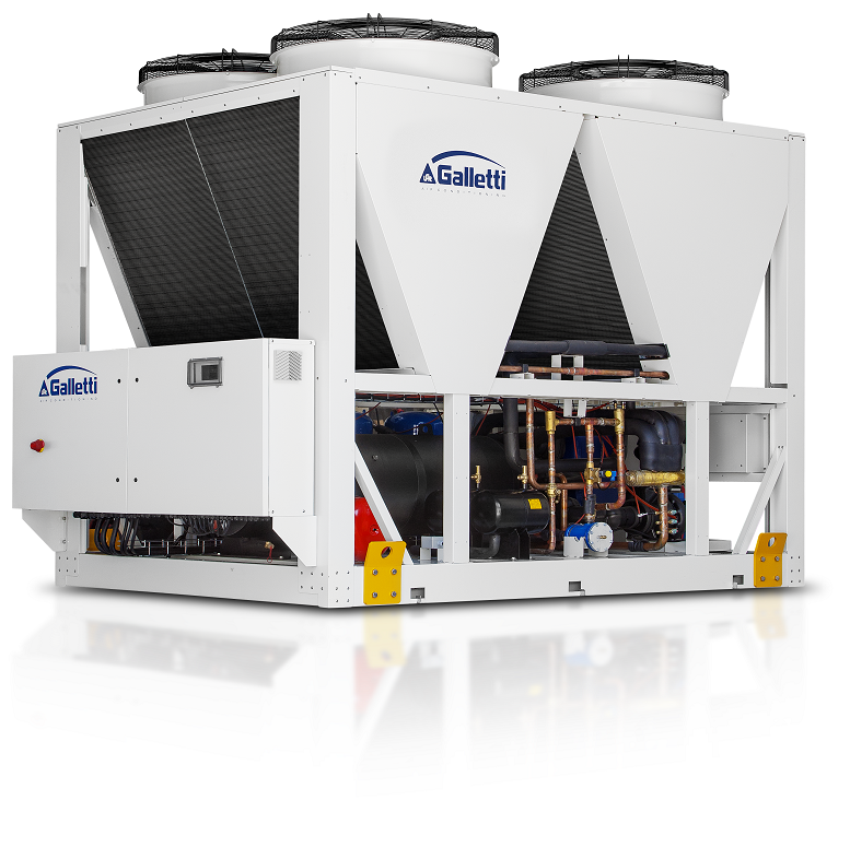 La gamma Galletti VLE di unità aria-acqua ad elevata efficienza stagionale con refrigerante a basso GWP, si compone di undici modelli – completamente configurabili selezionando versioni e opzioni – con potenze in raffrescamento che vanno da 150 a 570 kW, in versione solo freddo o pompa di calore reversibile.