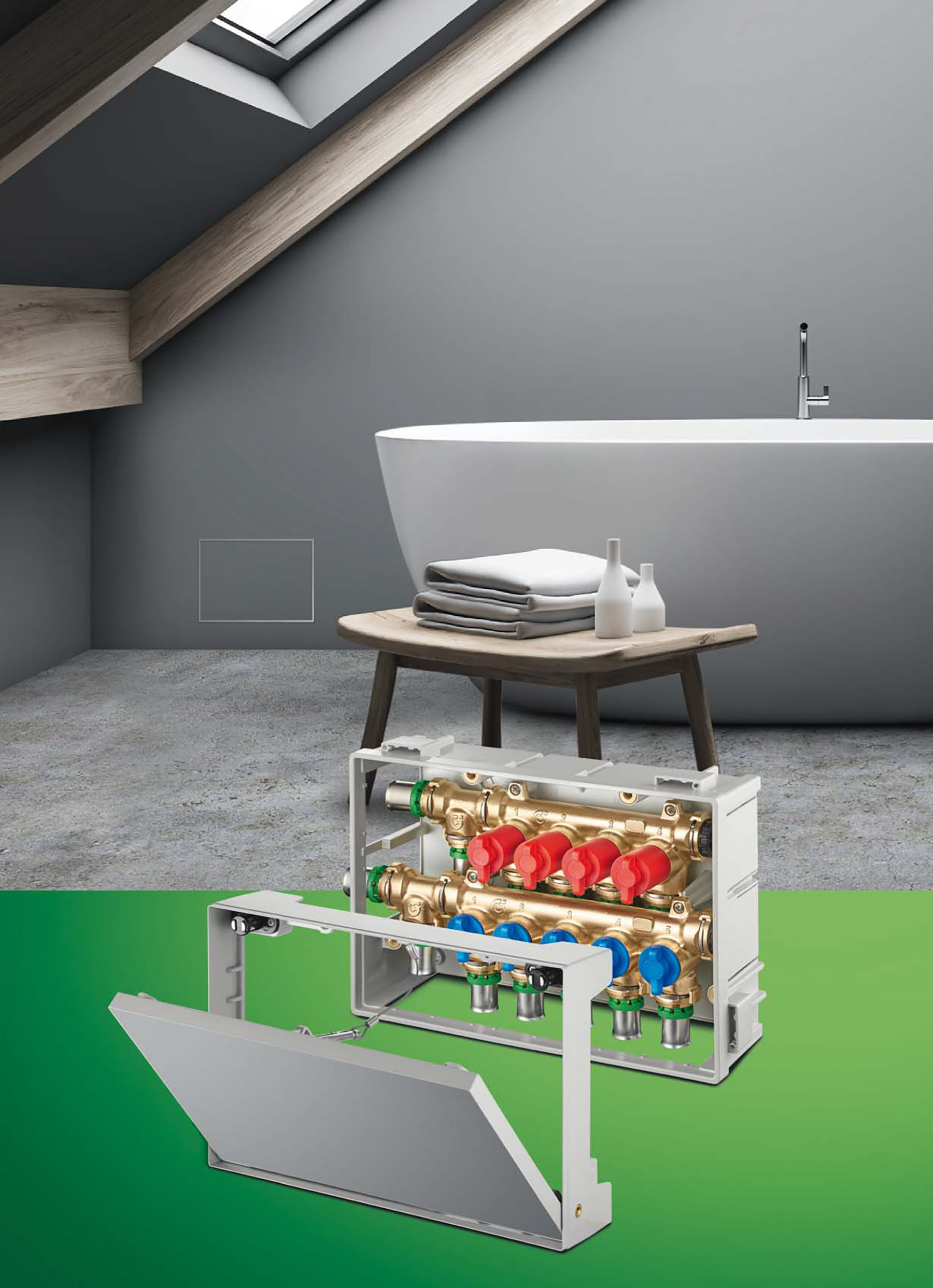 La versione con valvole di intercettazione per ogni singola utenza è dotata di cassetta con tecnologia push to open per consentire una finitura filo muro e integrare perfettamente il collettore con l’arredamento. In alternativa è possibile optare per placche di copertura in finitura bianca verniciabile, acciaio lucido o spazzolato.