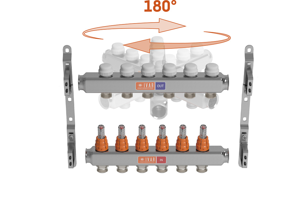 collettoriI collettori di distribuzione in acciaio inox da 1”, prodotto storico a catalogo IVAR (Prevalle, BS), da oggi diventano asimmetrici. Ciò significa che ruotando di 180° uno dei due collettori, si ottiene un disallineamento delle uscite, in modo da agevolare notevolmente l’installazione delle tubazioni anche in spazi ridotti. Innovazione importante che ha permesso di sottoporre il prodotto a domanda di brevetto.