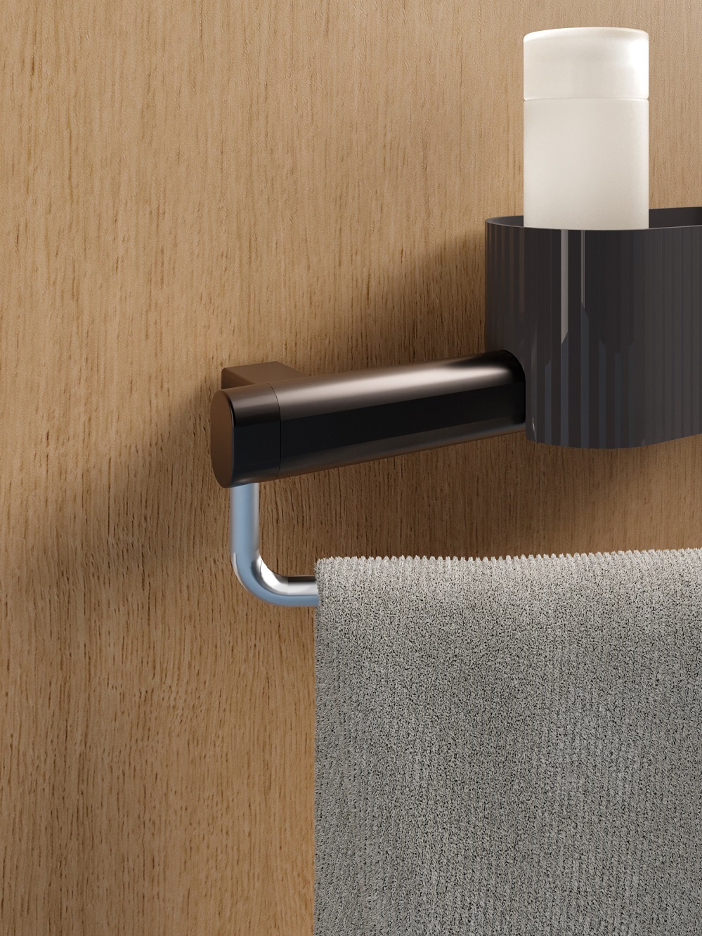 Semplici maniglie che hanno una propria identità perché frutto della progettazione con forme diverse da quelle tradizionali. La maniglia, a sezione ovale tipo “Oswego”, viene munita di accessori ed elementi che possano aumentarne le occasioni d’uso attribuendole sia una funzione di ausilio (dunque di sicurezza) che di arredo.