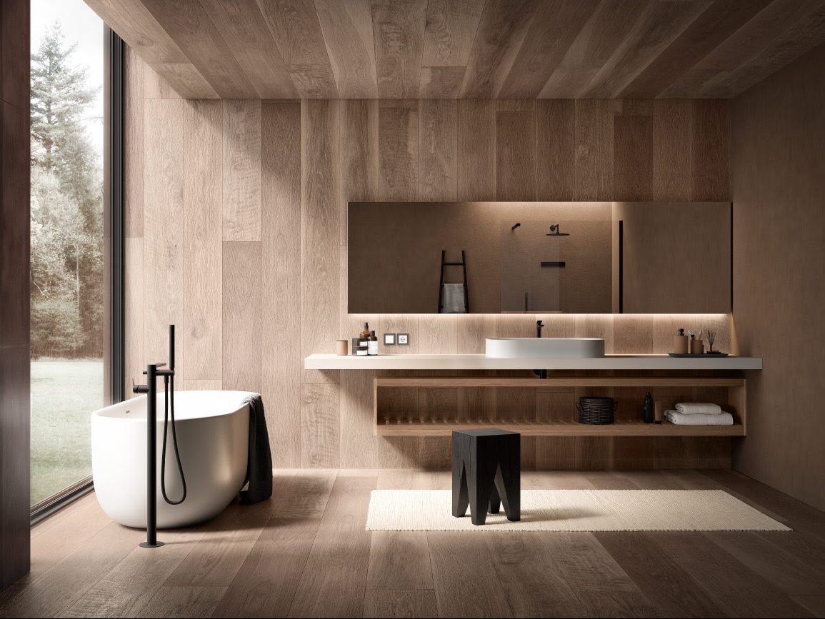 La collezione è completa per la sala da bagno. Per il lavabo sono disponibili quattro diversi modelli con altezze differenti: tradizionale con il corpo alto mm 153, sia con che senza scarico; medio con il corpo di mm 236 senza scarico e alto con il corpo di mm 326 sempre senza scarico. Molto scenografico, infine, il modello freestanding a pavimento con altezza mm 1145 dal forte impatto estetico.