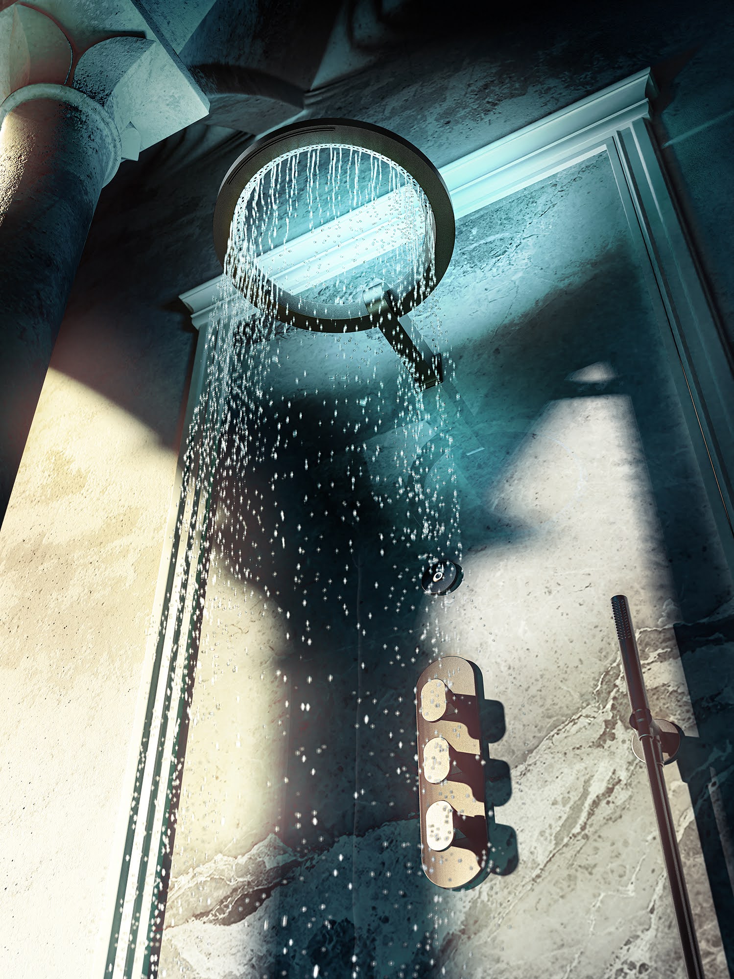 raffinata e contemporanea. Il sistema consente il controllo totale di angoli di flusso, modalità, luce e temperatura, trasformando ogni doccia in un lusso personale, calibrato sulle proprie esigenze.