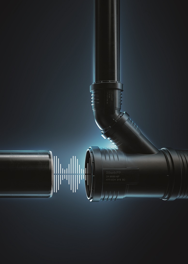 Per la riduzione delle fonti sonore di un impianto, Geberit propone due prodotti: Silent-PP, un sistema di tubazioni multistrato ottimizzate acusticamente ideale per le diramazioni al piano e Silent-PRO, tubazioni ad elevato potere fonoisolante studiate per le colonne di scarico montanti (75, 90, 110 mm).