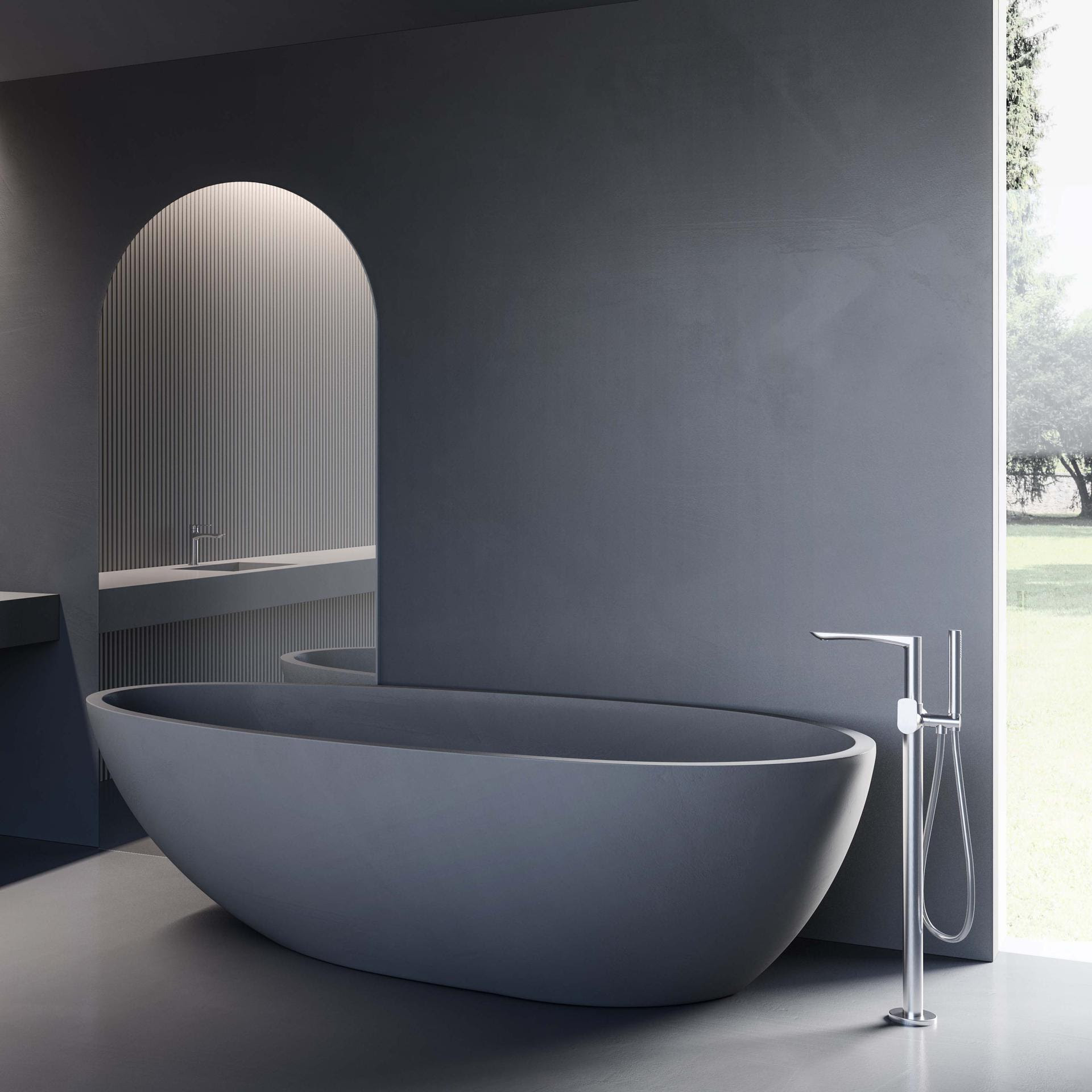 «Siamo partiti dalla linea tonda, focalizzando l’attenzione sul movimento della leva e sulla bocca di erogazione: i due elementi a cui abbiamo voluto dare più carattere», fa sapere l’azienda. «Abbiamo eliminato il consueto taglio a 25 gradi posto sul retro della leva, sostituendolo con un sistema a scivolo. Soluzione che dona al miscelatore una pulizia estetica e un’agile eleganza: i componenti risultano in perfetta continuità».