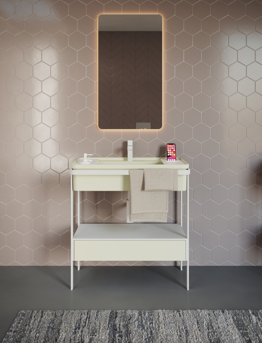 Arriva la prima Vanity Unit di SDR. Pilò è il mo­bile elegante e versatile di SDR per un bagno pop e gla­mour. Composto da una strut­tura in acciaio Inox verniciato a polvere e un lavabo in ceramica, offre tutti i comfort necessari per una beauty routine comple­ta.