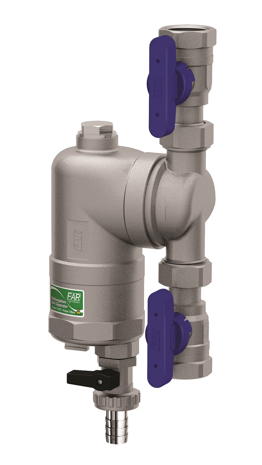 FAR (Gozzano, NO) ha completato la gamma di defangatori compatti SMART con la versione dotata di due valvole a sfera premontate per intercettare il fluido e rendere facilmente ispezionabile il defangatore. Il defangatore SMART, grazie alle sue dimensioni ridotte, riesce a garantire le prestazioni dei defangatori classici, risolvendo il problema degli ingombri. All’interno del defangatore è inserita una cartuccia filtrante, costituita da barrette verticali alettate e posta in posizione trasversale rispetto alla direzione del fluido, che rallenta e ferma la corsa delle particelle.