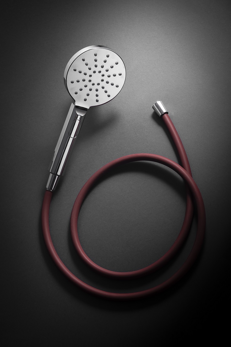 Un pratico flessibile in PVC antitorsione di 150 cm di lunghezza offre una seconda uscita dell’acqua per abluzioni rapide e veloci con la doccia a mano anticalcare AURORA, in ABS cromato, a tre getti con selettore a pulsante.