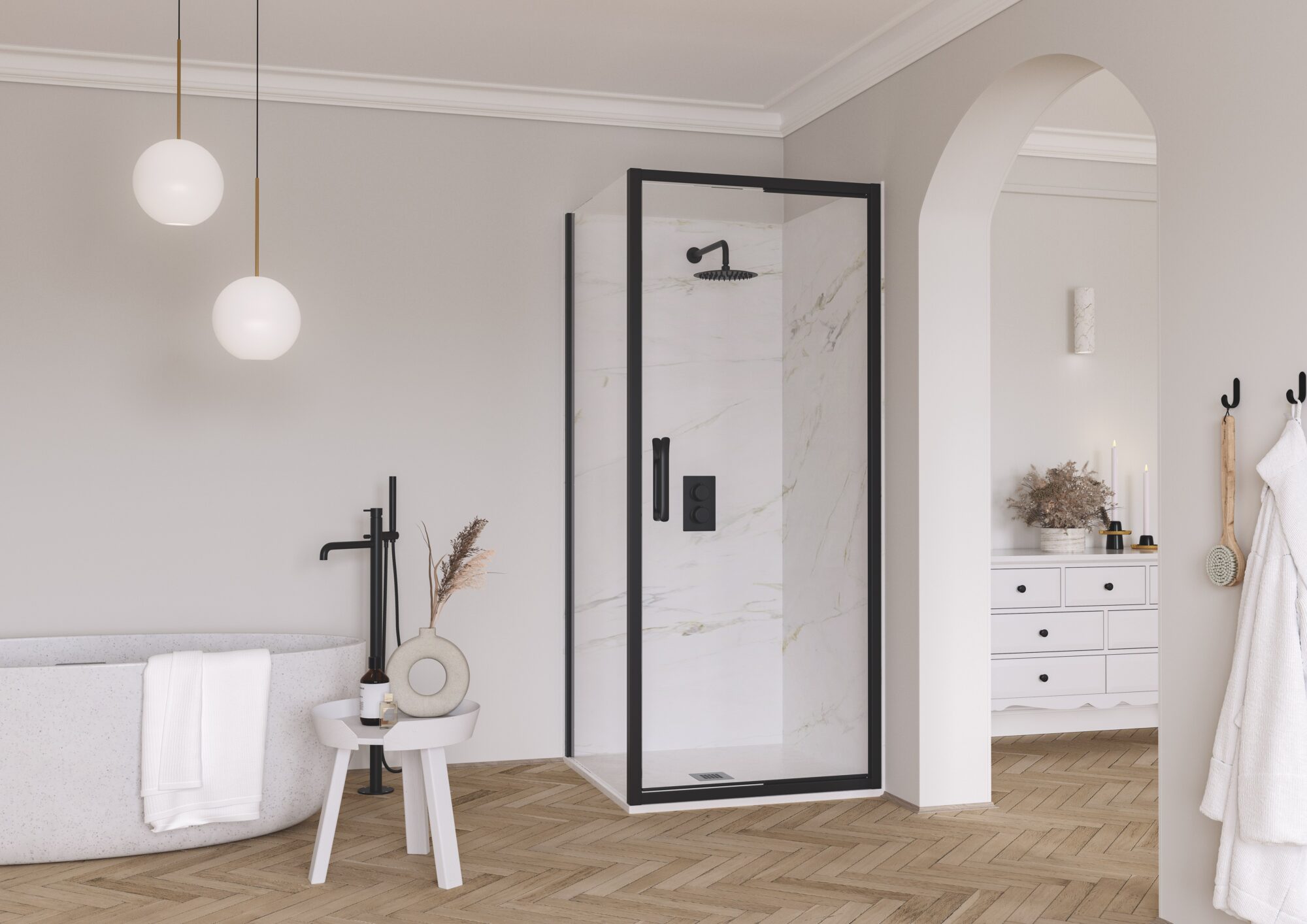 FLAIR presenta per il 2022 ETO All Black Infold (rototraslante), un progetto con uno scopo preciso, l’ethos del Design dell’ambiente doccia. Una collezione premium di box doccia Infold (o rototraslante) nella versione nera opaco, elegante e contemporanea.