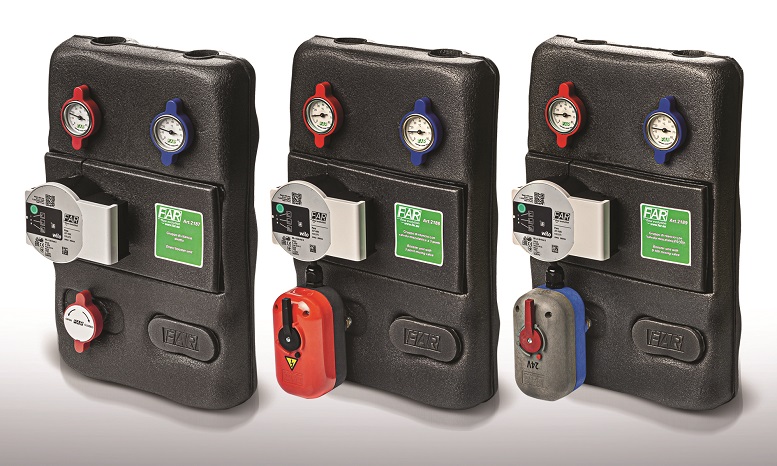 gruppi di rilancioI gruppi di rilancio art. 2187-2188-2189 di FAR Rubinetterie (Gozzano, NO) sono indicati per la regolazione e la distribuzione del fluido termovettore su impianti di riscaldamento e raffrescamento multi-zona. In genere vengono installati in centrale termica, dopo la caldaia/pompa di calore e il separatore idraulico e vanno montati sui collettori di distribuzione.