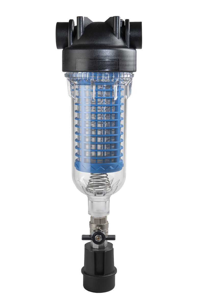 Il filtro, di dimensioni ridotte, ha un contenitore in Pet trasparente, cartuccia in rete di acciaio inox 90 mcr ed imbuto di scarico con sistema anti-inquinamento da riflusso. Le operazioni di pulizia sono semplici e alla portata di tutti: quando l’elemento filtrante è intasato, il controlavaggio viene attivato con la semplice apertura della valvola posta in fondo al bicchiere. Con questa operazione la cartuccia viene spinta verso il basso e si inverte automaticamente il flusso dell’acqua dall’interno verso l’esterno dell’elemento filtrante.
