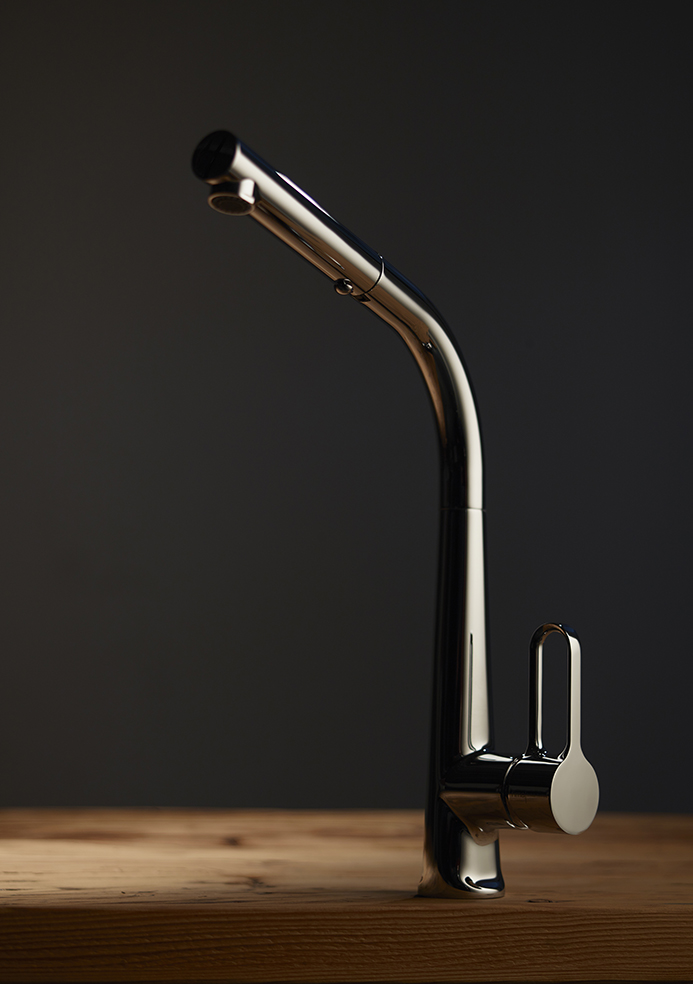 Tre le componenti principali studiate per rendere più semplice l’interazione e accrescere la qualità della vita in cucina: la base, il blocco di comando e il doccino basculante.