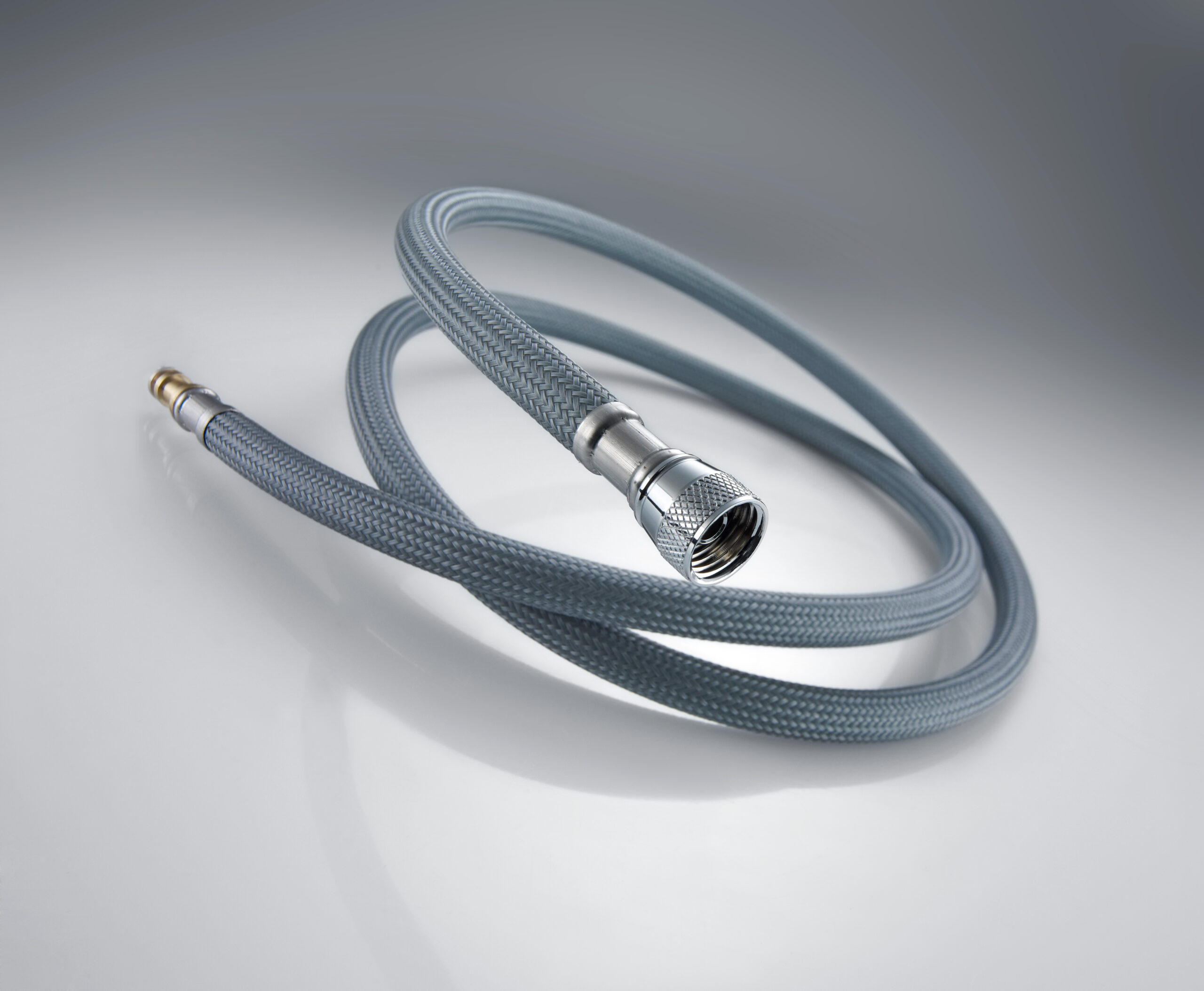 flessibiliCon CRG, NEOPERL garantisce una versione economica per i tubi pull-out. Il tubo corrugato interno garantisce massima flessibilità e resistenza allo schiacciamento. La misura è standard (DN 8), la trecciatura molto compatta e disponibile in versione total black o total grey con raccordi di ottone e bussole in acciaio inossidabile.