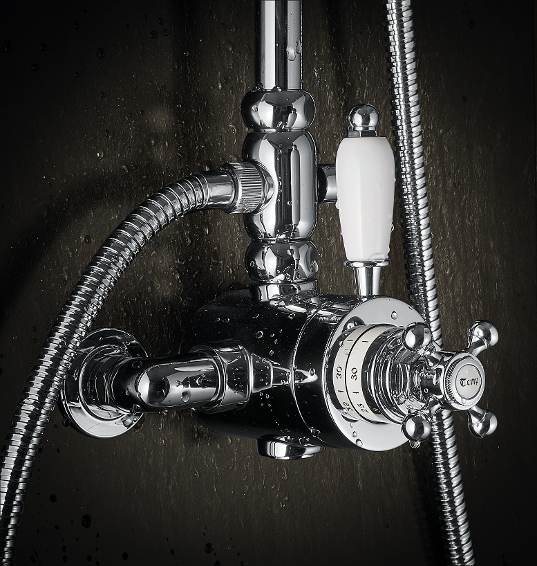 Passato e presente si incontrano in un prodotto coassiale e termostatico, dalle forme morbide e tondeggianti: le linee sinuose riportano al fascino intramontabile degli arredi tradizionali, per donare all’ambiente bagno un gradevole tocco vintage pur assicurando prestazioni all’avanguardia. Il miscelatore termostatico doccia esterno concentrico, in particolare, presenta elementi retrò come l’iconica maniglia a croce per regolare la temperatura e la leva con ceramica bianca per gestire il flusso.