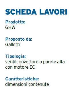 Dal punto di vista dell’installazione, GHW di Galletti rappresenta una scelta strategica: la configurazione a parete alta, infatti, consente di liberare la superficie a pavimento assicurando una distribuzione più omogenea dell’aria all’interno del locale, con un conseguente miglioramento del comfort percepito e una maggiore libertà nella disposizione degli arredi.