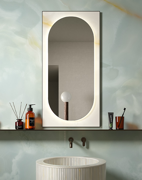 Disponibile in quattro forme iconiche – Arco, Oblò, Portale e Quadro – Sguardi si inserisce con naturalezza in ogni spazio, con linee sinuose capaci di conferire una forte impronta stilistica.
