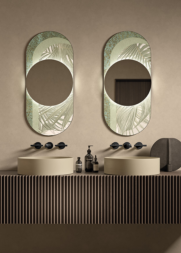 Ogni specchio può così essere interpretato come una sintesi del progetto bagno, un dettaglio ricco di significato che restituisce coerenza, ritmo e identità all’ambiente.