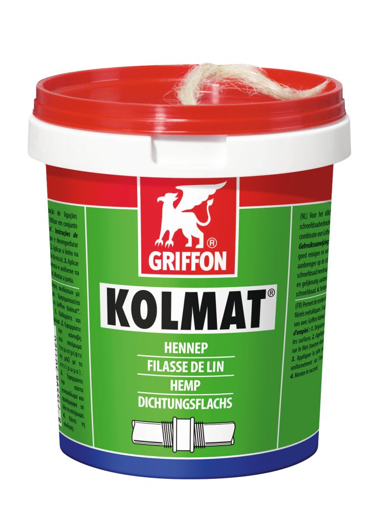 IL SISTEMA KOLMAT®: TRADIZIONE E SICUREZZALa linea Kolmat® di Griffon perfeziona questo sistema con prodotti di qualità superiore: la fibra di lino naturale e la pasta sigillante verde rappresentano l’accoppiata vincente per installazioni professionali in sistemi di acqua, riscaldamento centralizzato, gas e aria compressa.