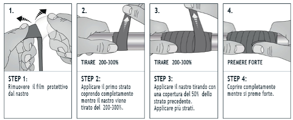 - Applicare il nastro in un area di circa 10cm con la perdita nel mezzo.