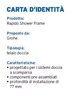 Grohe propone un telaio doccia appositamente pensato per sistemi doccia a scomparsa che consente l’installazione in pochi passaggi.