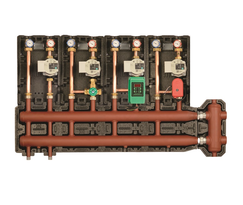 I gruppi di rilancio Comparato (Cairo Montenotte, SV) ottimizzano lo spazio e le funzionalità in centrale termica: modularità, flessibilità, possibilità di personalizzazione e un design estremamente compatto ed ordinato sono i punti di forza. In abbinamento ai collettori complanari Diacol 125 o al collettore con funzione di compensatore integrato Diasys consentono di creare un sistema di distribuzione e regolazione molto efficiente.