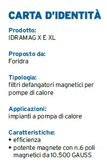 Foridra, che dal 2006 svi­luppa tecnologie avanza­te per il trattamento ac­que atte a garantire il massimo comfort termico, ha sviluppato e lanciato anche una gamma di filtri defangatori magnetici per proteggere le pompe di calore.