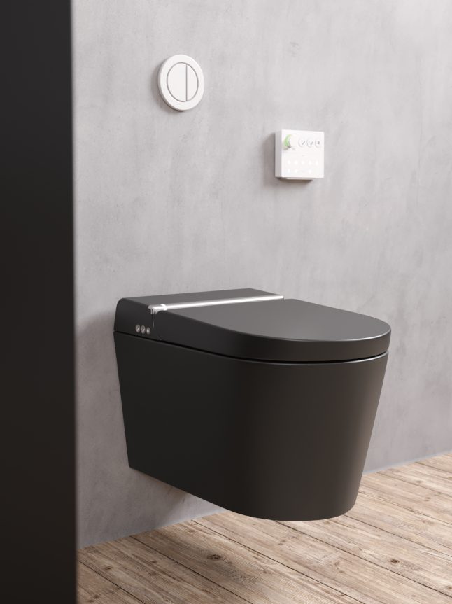 bagnoIl WC privo di brida Hygea, di Galassia, è dotato di bidet elettronico integrato e coprivaso soft close, oltre che particolarmente attento all’impatto ambientale. L’ugello del bidet è in acciaio inox, autopulente e a posizione variabile. Temperatura e intensità di getto e ugello per l’asciugatura sono regolabili e non mancano le funzioni pulizia posteriore, bambini e “auto” (igiene + asciugatura). Il vaso è inoltre dotato di pannello a controllo remoto, sensore radar, programma anticalcare e svuotamento automatico della tanica.