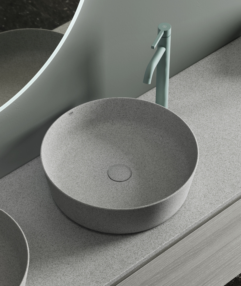 bagnoRak Ceramics propone Rak-Batu, collezione di lavabi in smalto artistico in finitura mica, e Rak-Plano, una serie di top coordinati nella stessa finitura. La linea conta un totale di nove prodotti che, se abbinati a legno, pietra e rattan, si richiamano allo stile delle case balinesi, mantenendo però il minimalismo del design contemporaneo. Il countertop Rak-Plano, privo di giunture, può essere forato e tagliato direttamente in fase di installazione, consentendo ampia libertà di posizionamento di lavabi e rubinetti.