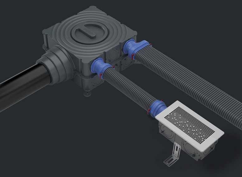 Anche le bocchette porta griglia sono compatibili con tutti i corrugati Valsir, e l’aggancio brevettato è in grado di evitare lo sgancio accidentale della griglia (essenziale quando quest’ultima è installata a soffitto).