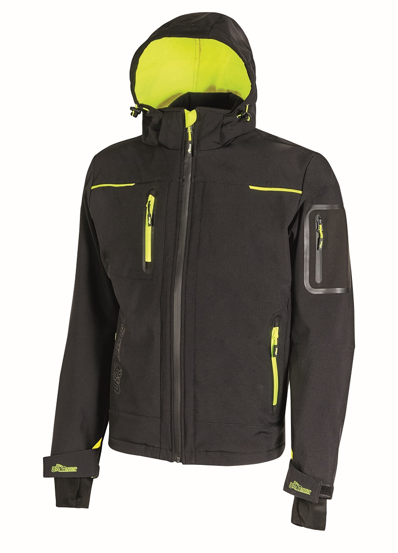 Space, infatti, offre una serie di equipaggiamenti al servizio del lavoratore: cappuccio regolabile staccabile, polsini regolabili con velcro e polsino antivento elasticizzato con foro passa-pollice, differenti tipi di tasche (frontali chiuse con zip fluo e coulisse anti-impigliamento regolabile all’interno; porta cellulare sul petto; due interne; una supplementare termosaldata su manica sinistra), fondo sagomato, nastro reflex su colletto nella parte posteriore, logo U-Power tono su tono.