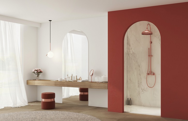 “Romantic and Passionate” è un ambiente pensato per i sognatori che trovano piacere nelle piccole cose. Il bagno è un luogo di tranquillità e bellezza con un’atmosfera vintage donata dalla finitura in oro rosa dei suoi componenti. Protagonista la colonna doccia ANTICA dalle forme retrò stondate, composta da un’asta 335 telescopica e girevole, soffione tondo ANTICO e dalla doccia a mano monogetto ANTICA che presenta una tipica impugnatura tondeggiante per facilitare la presa ed è dotata di flessibile 150 cm a doppia aggraffatura, ancora più resistente.