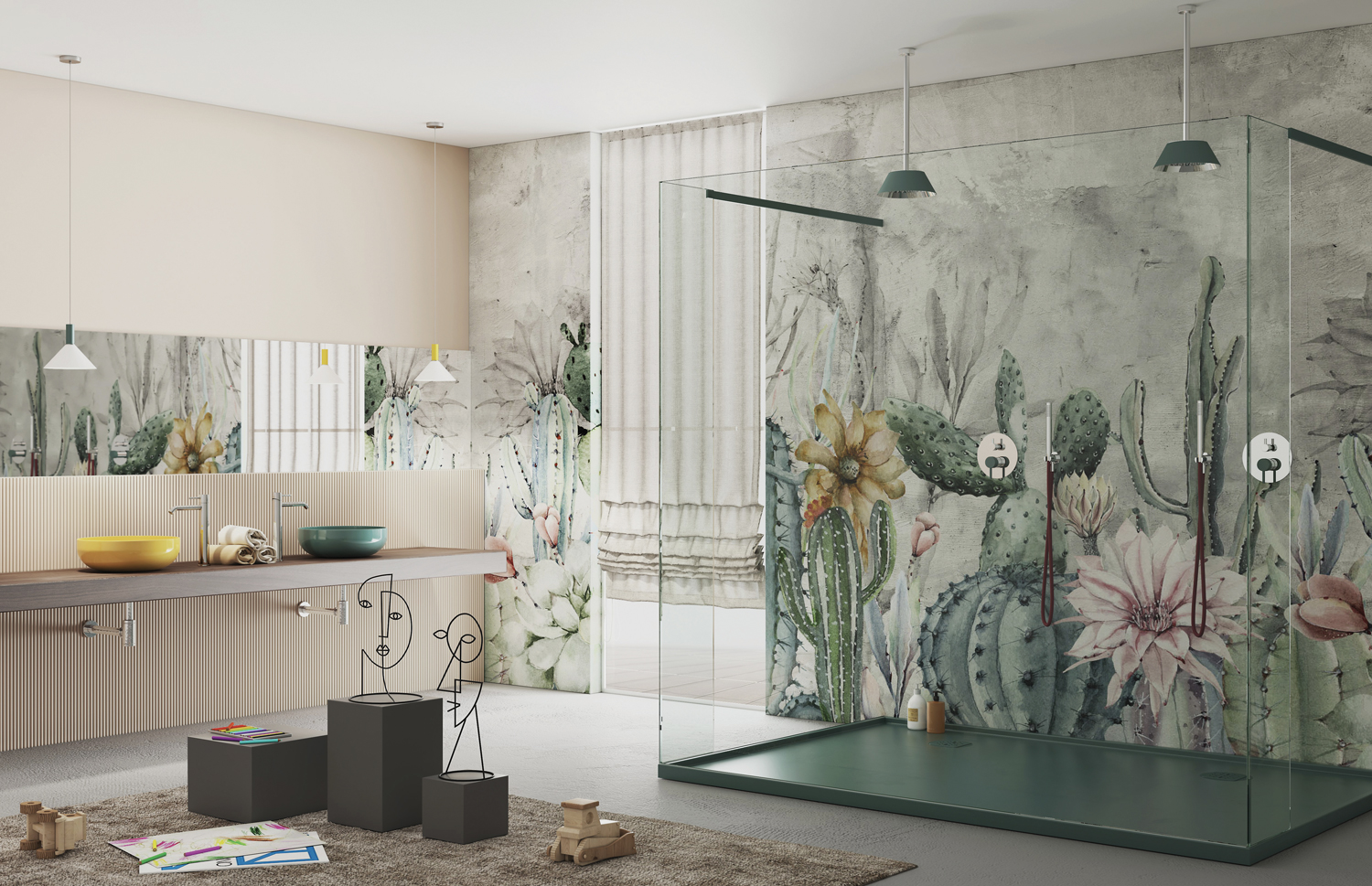 “Charming and Imaginative” è un ambiente dedicato ai viaggiatori e a chi ama esplorare e catturare la bellezza attraverso l’obiettivo di una macchina fotografica. La sua sala da bagno ideale è concepita come un ambiente di creatività e serenità, con dettagli che richiamano i luoghi visitati. La colonna doccia LILITH si adatta in maniera minimal ad ogni ambiente: freestanding e versatile, il suo corpo slanciato termina inarcandosi ad angolo acuto nel soffione in acciaio inossidabile AISI 316L spazzolato. È dotata di miscelatore e deviatore incorporati, e di una pratica doccia a mano monogetto con flessibile antitorsione. La seduta comfort pieghevole BAMBOO è realizzata in bambù naturale, resistente ed ecologico, a conferma della filosofia green dell’azienda.