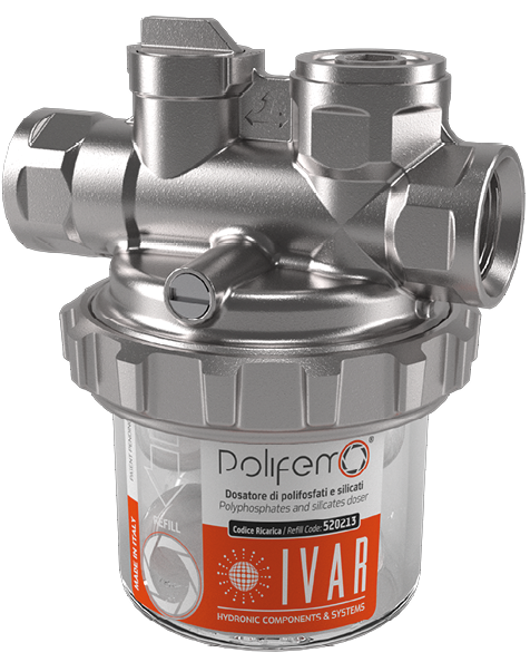 POLIFEMO® viene installato sulle tubature che portano l’acqua sanitaria nella caldaia (e in altre apparecchiature quali scaldabagno, lavatrici e lavastoviglie) per ridurre la presenza di calcare. I polifosfati e i silicati rilasciati dal dosatore creano una pellicola di protezione nelle tubature, utile ad evitare la corrosione causata dal calcare.