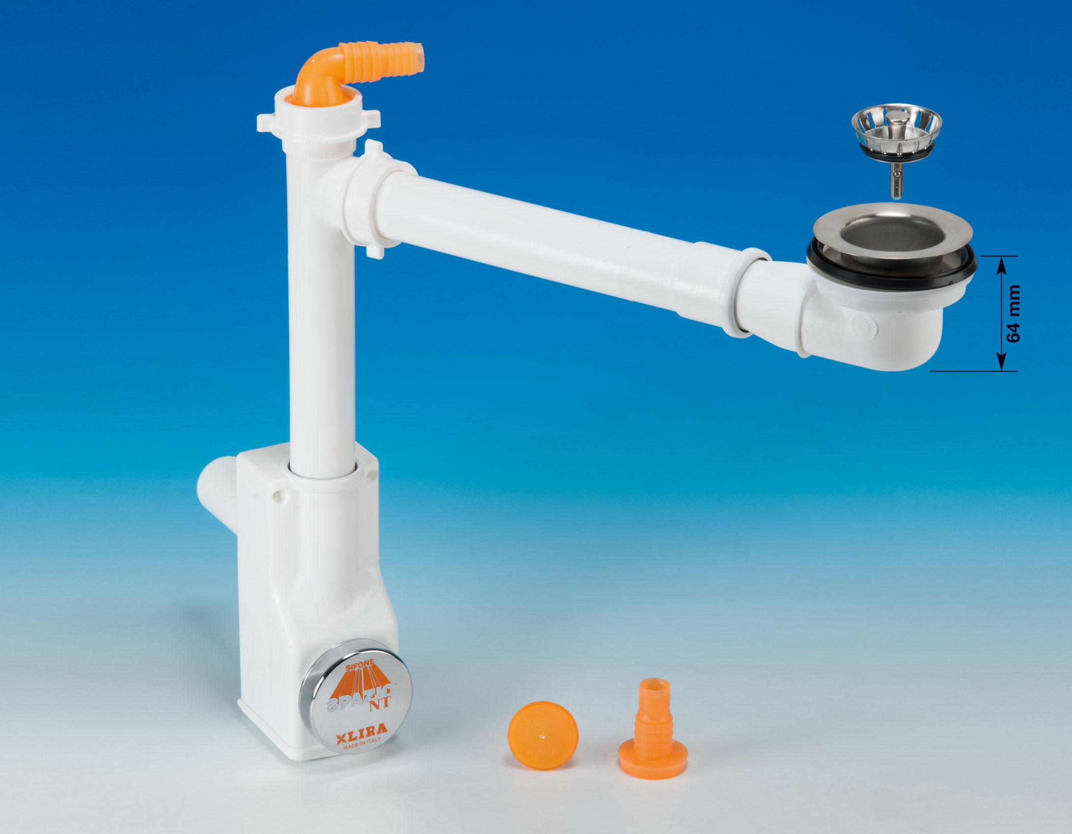 Il sifone Spazio 1NT, grazie alla sua particolare conformazione aderisce alla parete di fondo, abbinato alla Piletta Basket Mini Gattinara, dall’esigua altezza di soli 64 mm, la zona sottolavello diventa così utilizzabile come vano per riporre in modo ordinato e funzionale detersivi e similari oppure per alloggiare i raccoglitori della raccolta differenziata dei rifiuti.