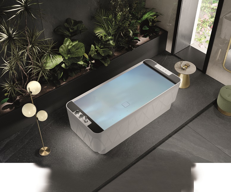 vascaKinedo (Siziano, PV) presenta Glamour, la nuova vasca freestanding elegante, dalle linee moderne ed essenziali, con i sistemi a sfioro e oxygen pool plus.
