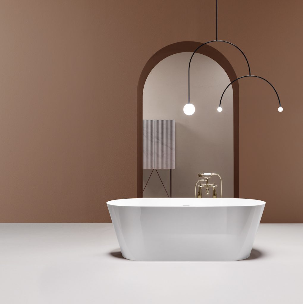 Posizionabile a centro stanza in diversi ambienti della casa, questa soluzione è realizzata in acrilico, un materiale versatile che si plasma con facilità, in grado di mantenere la temperatura dell’acqua.