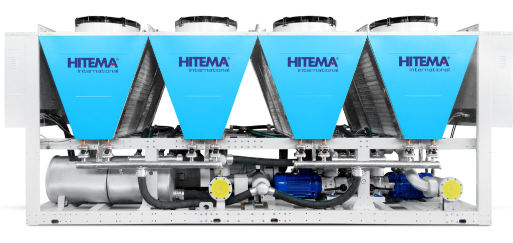 Le gamme di Hitema comprendono refrigeratori condensati ad aria con compressori semiermetici a velocità variabile gestiti da software particolarmente avanzati, in grado di raggiungere massimi valori di efficienza energetica, specialmente ai carichi parziali.