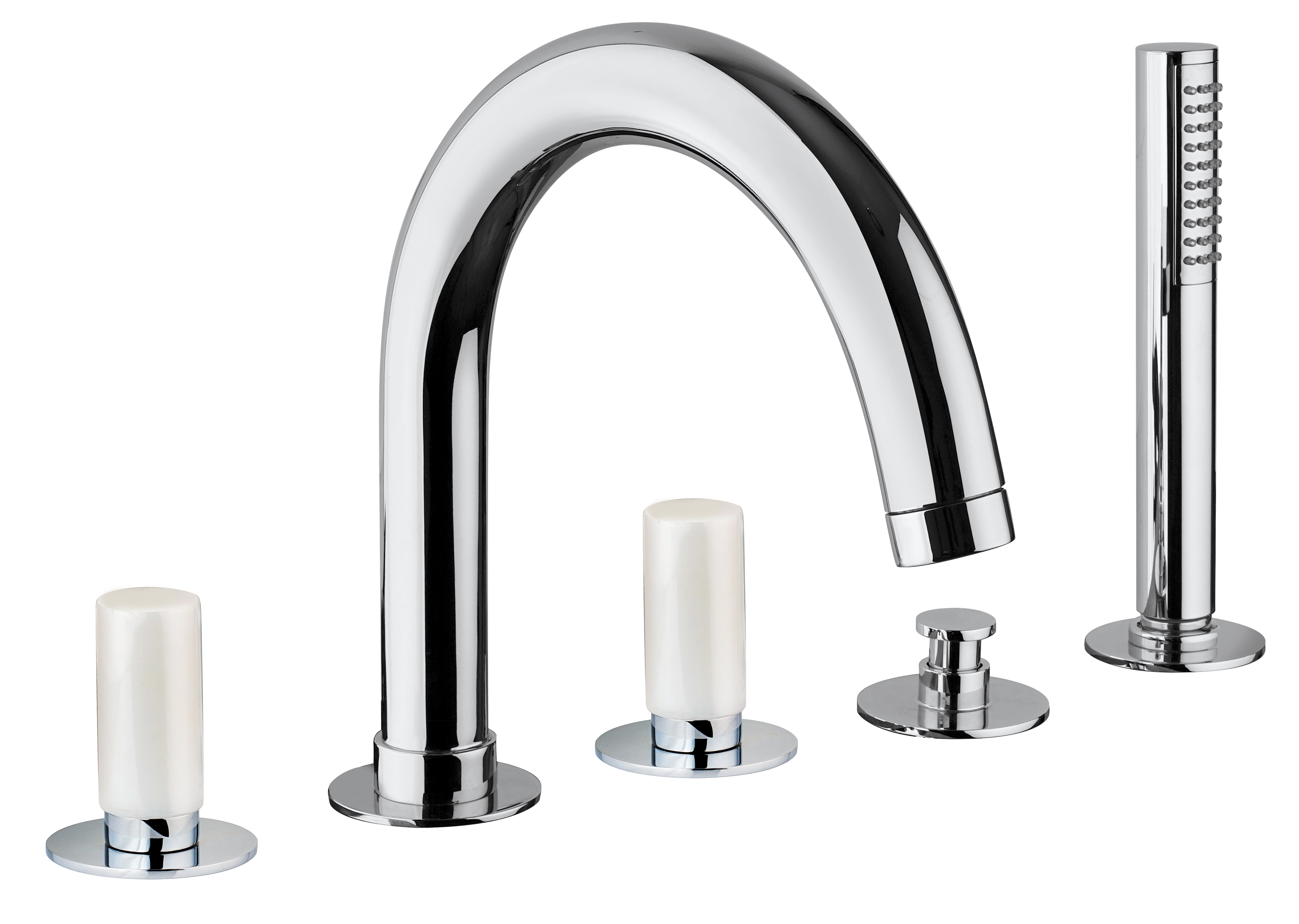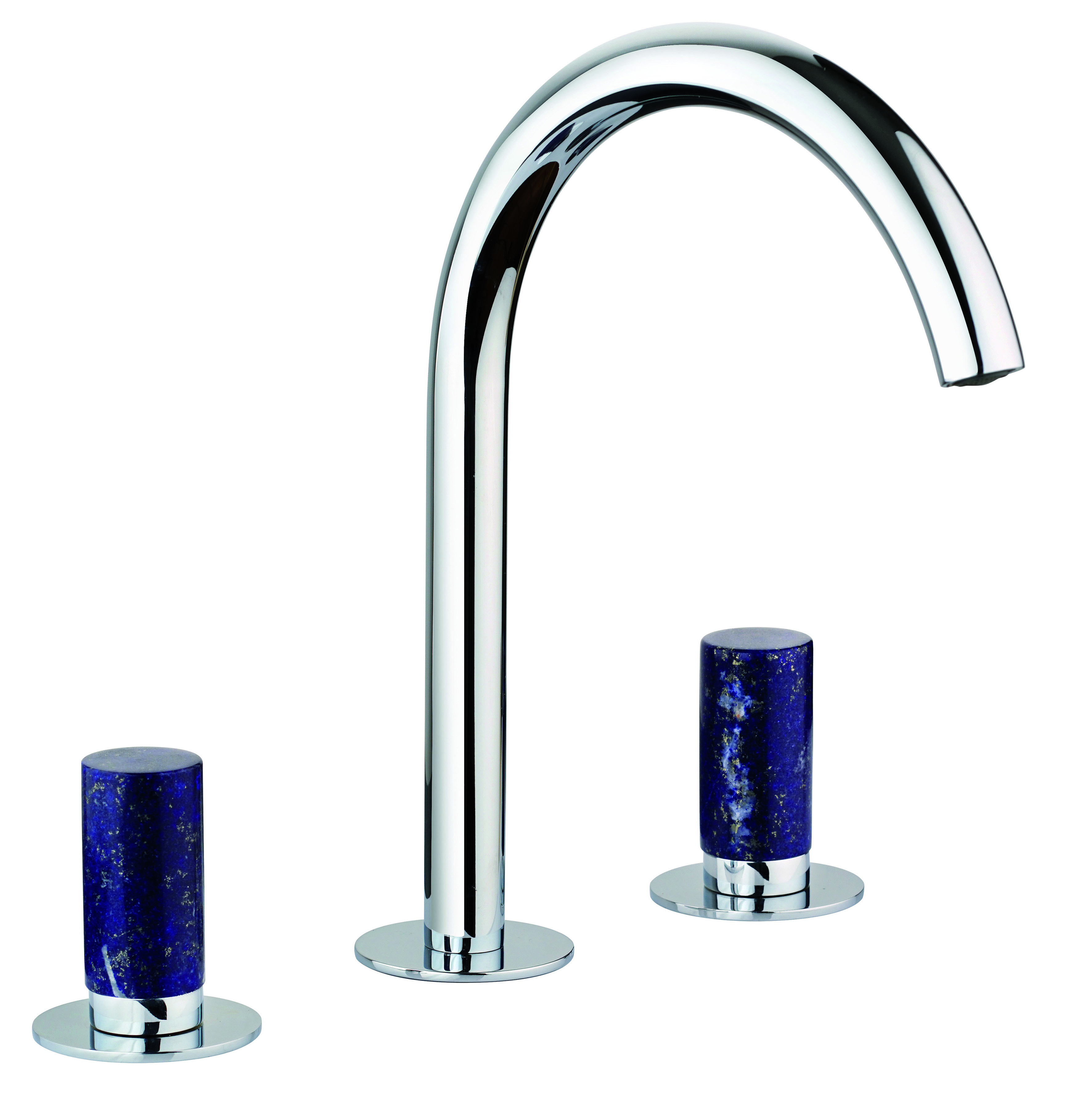 La serie di rubinetteria tradizionale VITA M STYLE elogia l’essenzialità geometrica con le sue bocche e maniglie piatte, estremamente funzionali. E’ composta da batteria 3 fori lavabo con bocca alta e a parete; batteria bidet; bordo vasca con e senza bocca, complete di doccia estraibile; incasso doccia a 2 e 3 vie. E’ disponibile in ottone cromato o dorato, ciascuna con quattro tipologie di pietre differenti per le maniglie: bianco marmo; nero portoro; blu lapislazzuli e verde malachite.