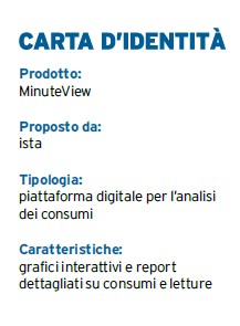 Con MinuteView, ista Italia offre un servizio completo che spazia dall’esame dei consumi e dei costi attuali e storici, all’elaborazione di un progetto completo, flessibile e modulabile secondo i requisiti e gli obiettivi specifici indicati da ciascun cliente, dall’installazione dell’hardware (anche con formula a noleggio), al corretto settaggio del software con migrazione sicura dei dati, dal monitoraggio e all’analisi continua dei dati di consumo, con consulenza specializzata basata sull’esperienza e la competenza maturate nel settore, sino all’adattamento e alla personalizzazione della piattaforma in coordinamento con il corporate design del Cliente.