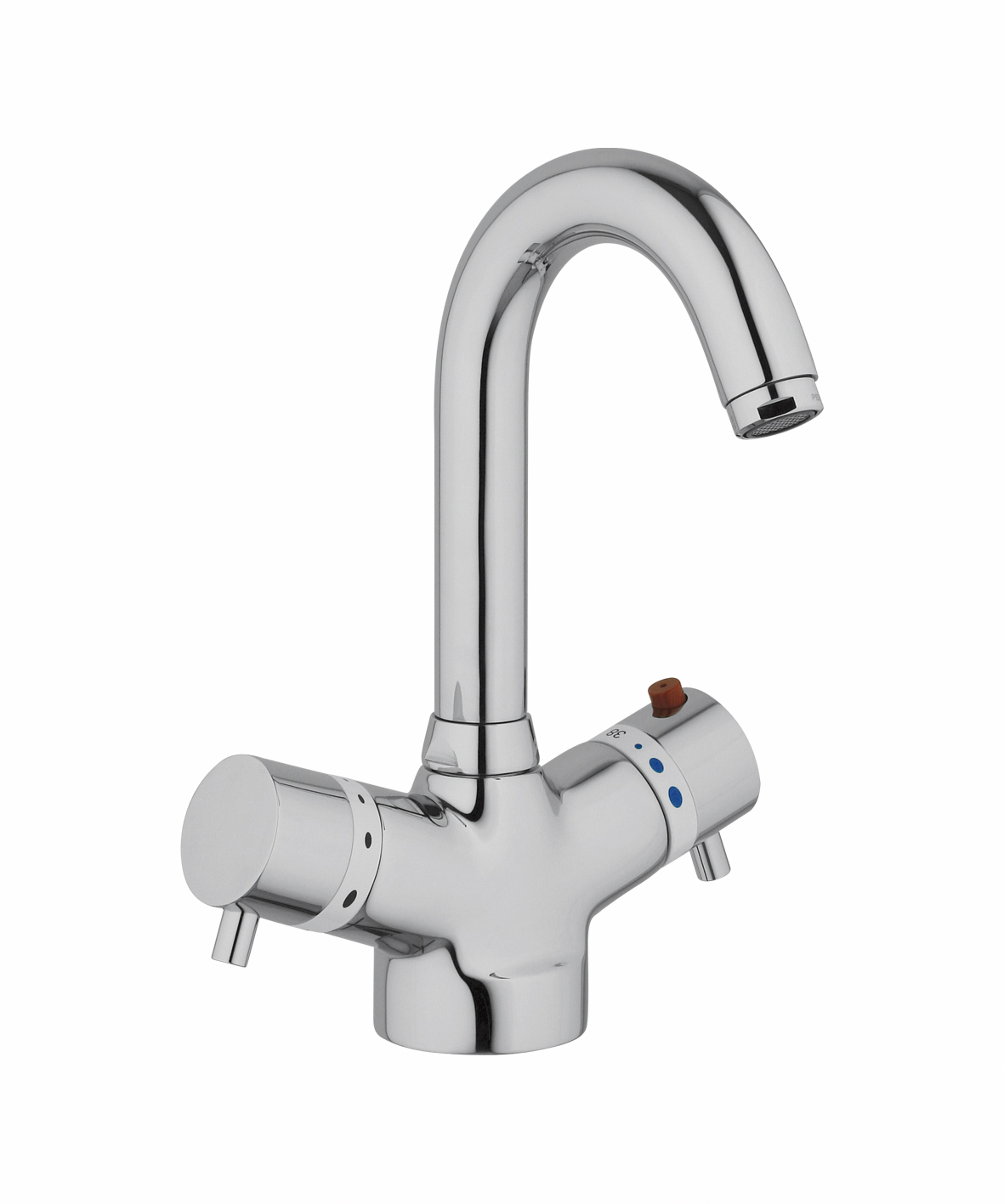 L’eccellente affidabilità del miscelatore termostatico è testimoniata dai molteplici accorgimenti studiati ad hoc, a partire dalla manopola di regolazione provvista di un anello che indica la temperatura pre-definita di 38 °C e quella limite di 46 °C. Con il bottone “Legionella” e il relativo fermo, la temperatura massima può essere aumentata fino a 70 °C (o comunque fino al massimo consentito dal sistema idraulico) allo scopo di pulire il miscelatore dal batterio della Legionella, procedimento che può essere eseguito solo da un tecnico o da personale qualificato, usando un ago o un attrezzo molto fine per premere il pulsante speciale, sempre all’insegna della totale sicurezza per l’utente.