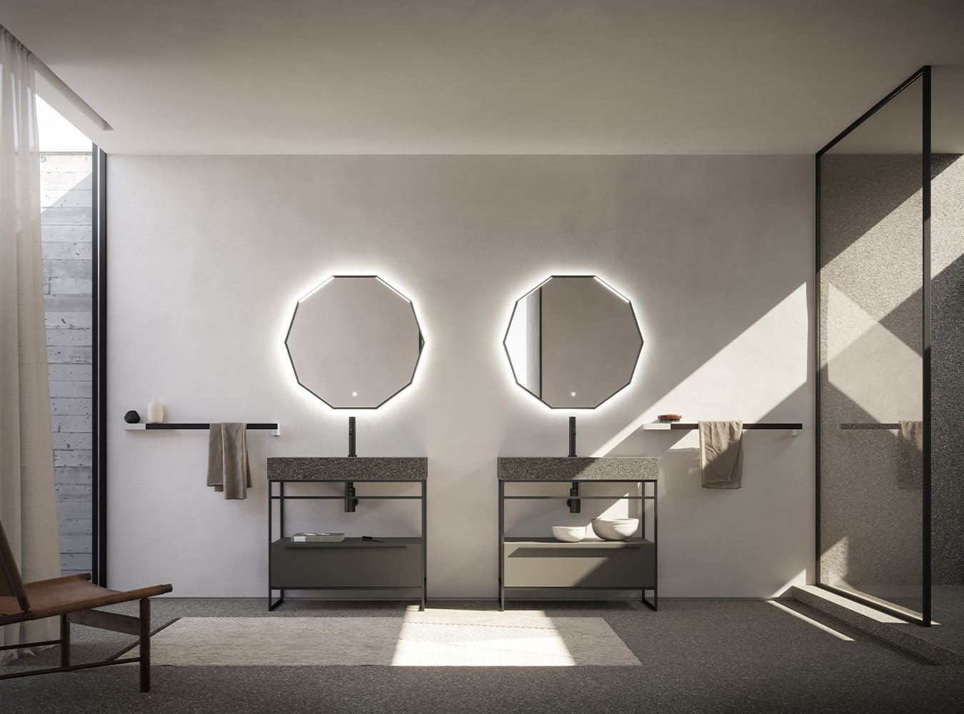 Con la stessa sensibilità per la precisione geometrica e per la cura del dettaglio, ogni composizione può essere abbinata a lavabi, piani top, specchiere, faretti, accessori e complementi presenti nel listino Arbi e ai box doccia, piatti doccia, vasche freestanding e termoarredo presenti nel programma Ibra Showers.