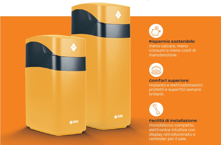 Con Cillit Millenium, l’acqua dura viene trasformata in acqua dolce, migliorando sensibilmente la qualità della vita domestica. L’addolcimento contribuisce a proteggere lavatrice, caldaia ed elettrodomestici che utilizzano acqua calda, riducendo la formazione di incrostazioni e prolungandone la durata operativa. Meno calcare significa anche minori consumi energetici e minore necessità di manutenzione ordinaria, con vantaggi concreti sia per il portafoglio sia per l’ambiente.