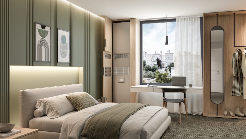 Le pompe di calore aria-aria senza unità esterna permettono di elettrificare ed efficientare il comfort senza importanti opere murarie, senza bisogno di occupare spazio su balconi o terrazze e senza necessità di intervenire su tutti gli ambienti contemporaneamente. Per favorire il retrofit parziale dell’impianto con pompe di calore aria-aria senza unità esterna, Olimpia Splendid presenta anche l’integrazione tecnologica tra un tradizionale radiatore e la nuova generazione di Unico®.