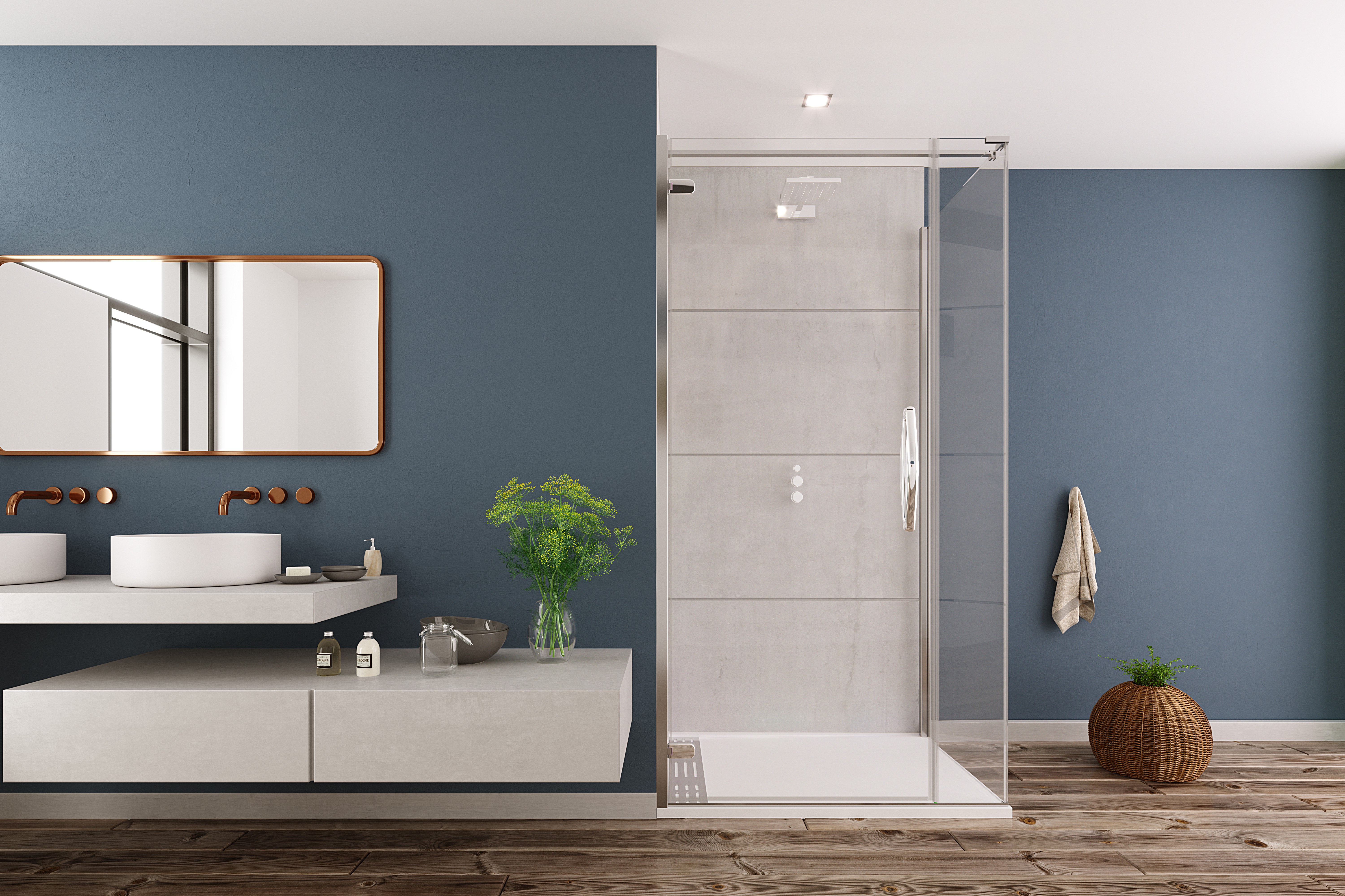 Il box doccia ORO nella versione ultra frameless è realizzato in vetro temperato 8 mm, con un rivestimento protettivo in grado di rendere idrorepellente la superficie del vetro prevenendo così la formazione del calcare e sporcizia. I pannelli di 2 metri sono fissati con profili estrusi di alluminio sottilissimi, ma appositamente disegnati per accentuare la grazia del vetro. La porta a battente e ORO e il pannello laterale angolare ultra frameless irradiano stile ed eleganza contemporanea.