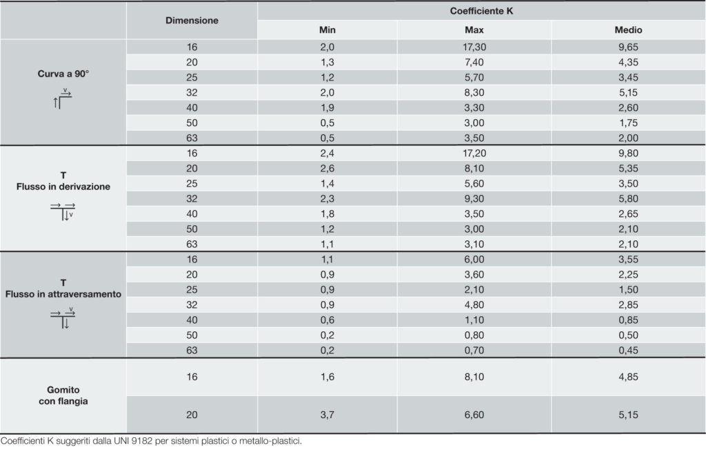 Le prestazioni idrauliche possono variare a tal punto che per ogni tipo di raccordo e per ogni dimensione è previsto un valore massimo e uno minimo, con gap spesso notevoli tra uno e l’altro. La stessa norma permette di adottare un valore medio per il dimensionamento dell’impianto nel caso in cui i coefficienti K non fossero dichiarati dal produttore.