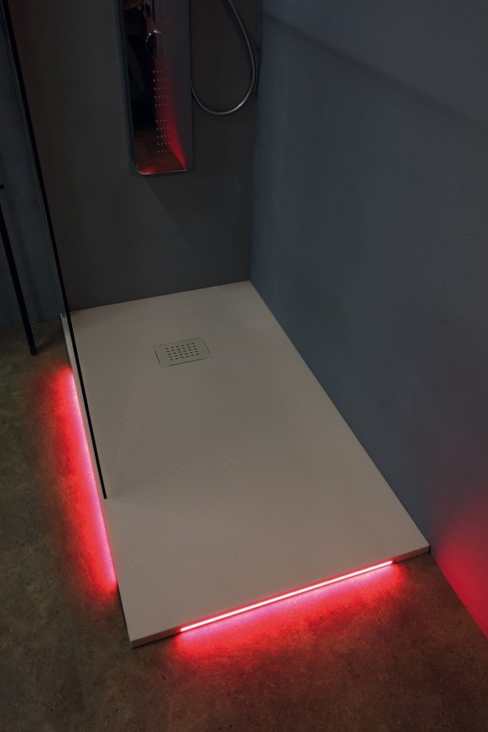I piatti doccia Night sono un vero e proprio elemento d’arredo che rende immediatamente unico l’ambiente bagno in cui sono inseriti. La loro peculiarità? Luci led posizionate lungo il perimetro del piatto che creano un effetto cromatico suggestivo: grazie al telecomando in dotazione è infatti possibile scegliere il colore che si preferisce proiettare nello spazio circostante per iniziare o finire la propria giornata nel migliore dei modi. La gamma di colori, tra cui è possibile scegliere, è infinita e permette di trasformare il proprio bagno in una oasi di relax in cui liberarsi dallo stress della giornata. I piatti doccia Night sono disponibili in finitura Ardesia Matt o Natural Stone Matt ed entrambe nelle seguenti colorazioni: bianco, grigio, antracite, panna e moka.