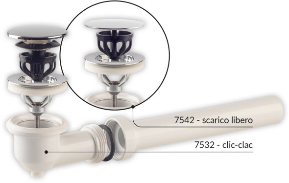 Una nuova versione con controdado in ABS e uscita orizzontale, particolarmente adatta ad essere abbinata ai sifoni salva-spazio OMP per lavabi e mobili bagno.