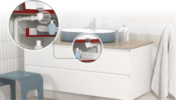 Con solo 55 mm di ingombro totale a partire dal lavabo la nuova gamma di pilette Tea risulta essere la soluzione tecnica ottimale nei mobili bagno laddove la presenza di cassetti e contenitori sotto-lavabo non consente l’installazione di pilette e sifoni tradizionali.