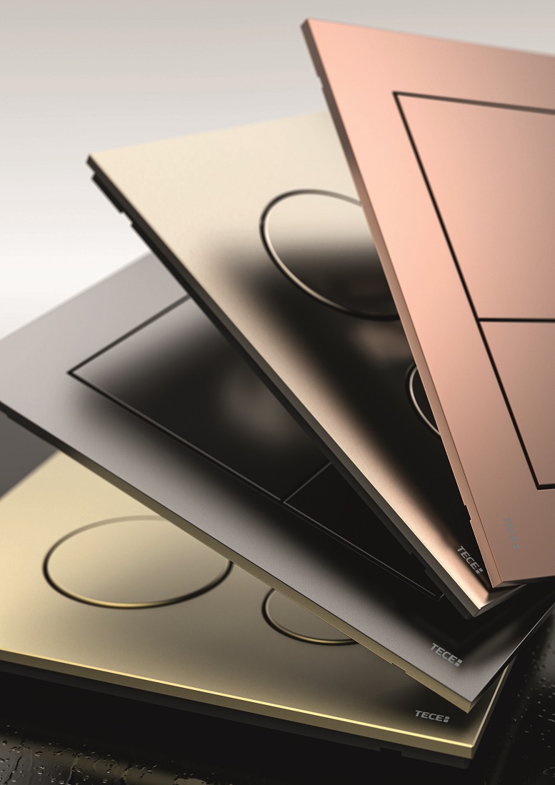 TECE ha ampliato la gamma di placche di comando WC in plastica TECEnow e TECEloop, aggiungendo quattro nuovi colori metallizzati. Le superfici dall’aspetto metallico sono attualmente la scelta preferita per inserire dettagli preziosi e contrasti emozionanti nel bagno: sono assolutamente originali, dal design fresco e di classe e si abbinano a molti stili di arredamento moderni. Inoltre, questa tipologia di superficie può contribuire a riflettere la luce nel bagno, creando un’atmosfera più luminosa e spaziosa.